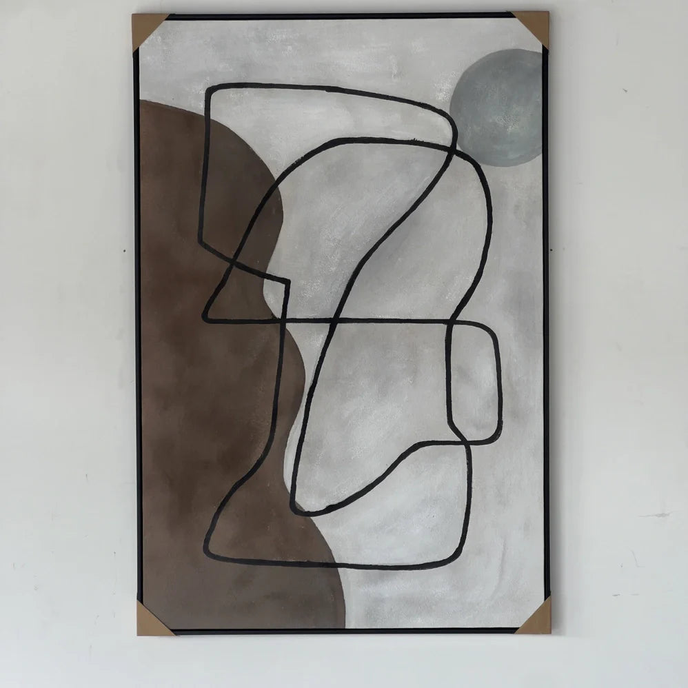 Elegant in its simplicity, "A Mother's Whisper" captures the gentle flow of emotions through abstract, fluid lines against earthy brown and soft gray tones. The interplay of minimalist shapes and a subtle textured background evokes warmth and intimacy, making it a deeply personal and artistic addition to any space.