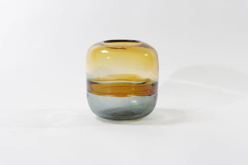 The Akkad Doppia Glass Vase features a striking, two-tone design that transitions seamlessly from a warm amber top to a deep green base. Its fluid shape captures the essence of modern elegance, bringing a playful yet refined character to your space. The subtle ombre effect enhances its visual appeal, making it a must-have piece for contemporary interiors.