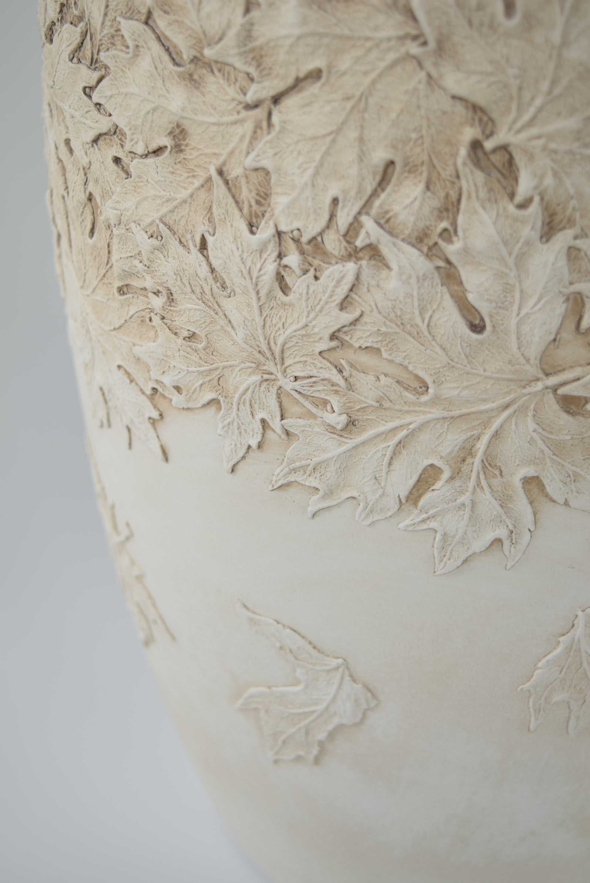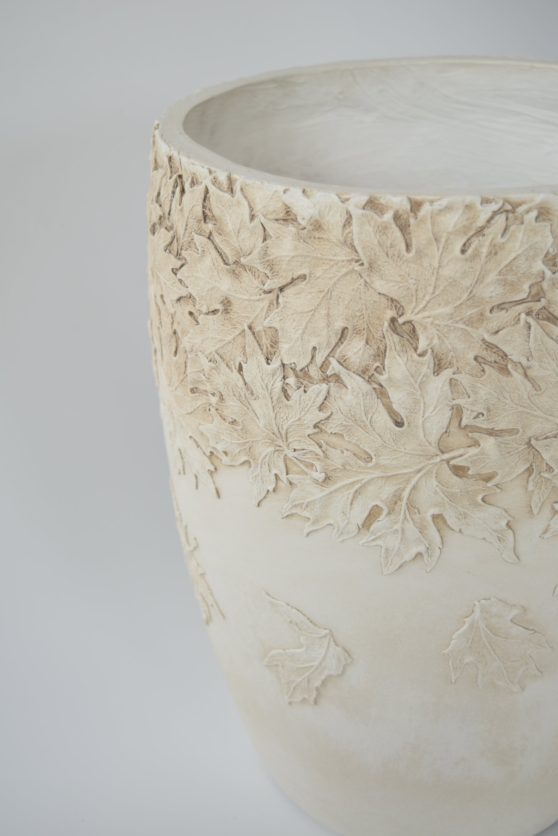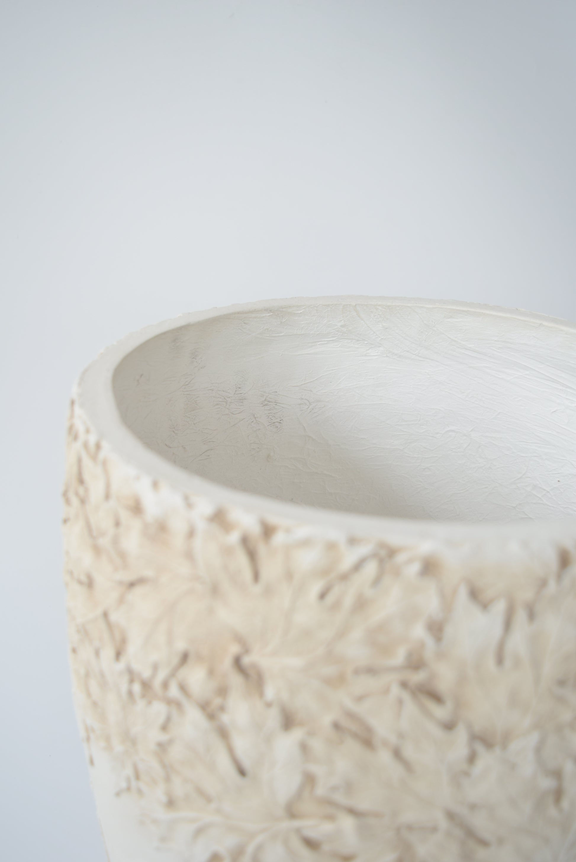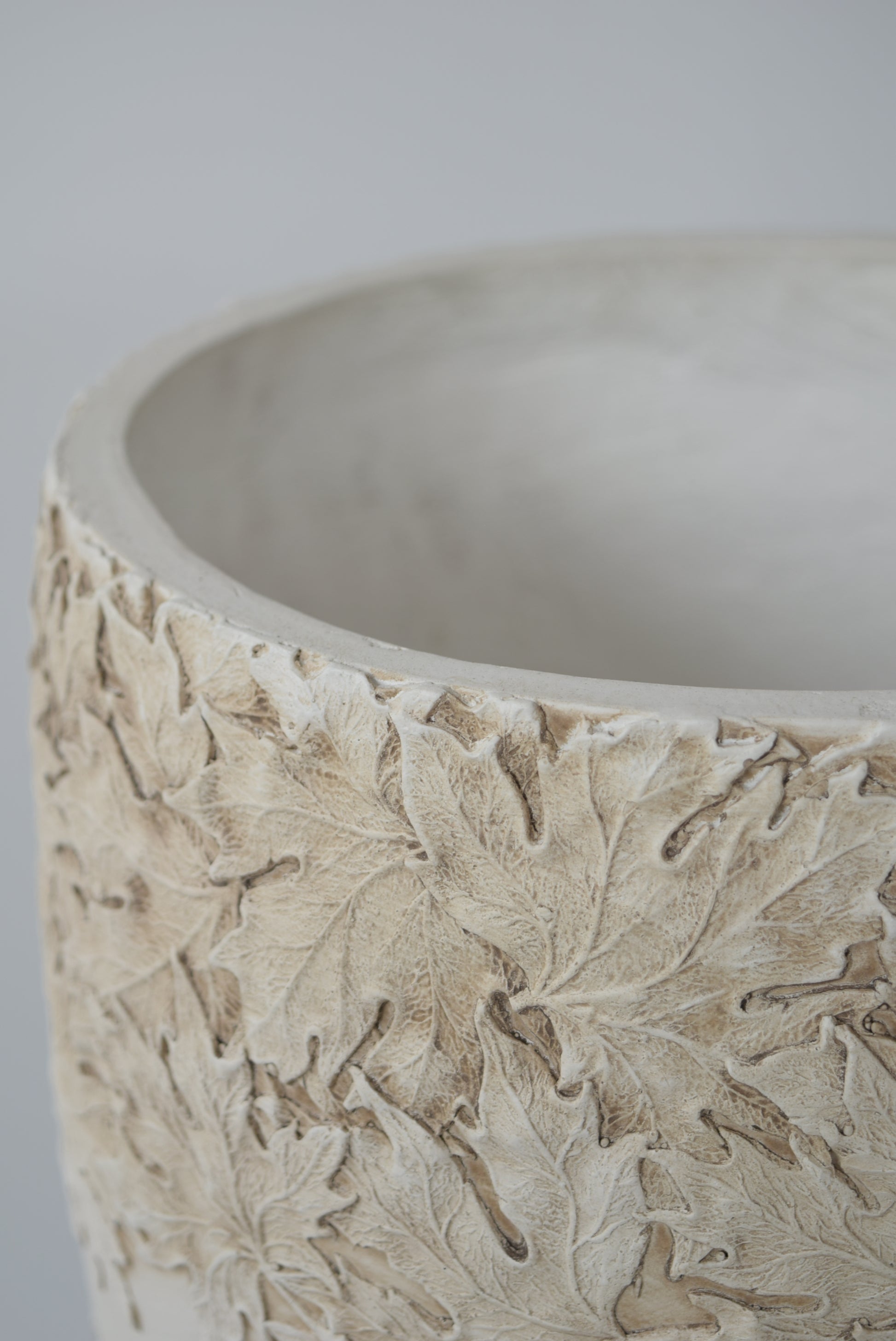 With a design that exudes grace and timeless elegance, the Aula Planter is crafted to complement both contemporary and classic interiors. The intricate etched patterns on the upper half create a subtle contrast with the basket weave texture on the lower half, offering a visually pleasing balance. Its soft off-white tone enhances its versatility, making it a perfect fit for various decor themes. Ideal for displaying lush greens, succulents, or flowering plants, this planter will breathe life into any space while keeping it refined.