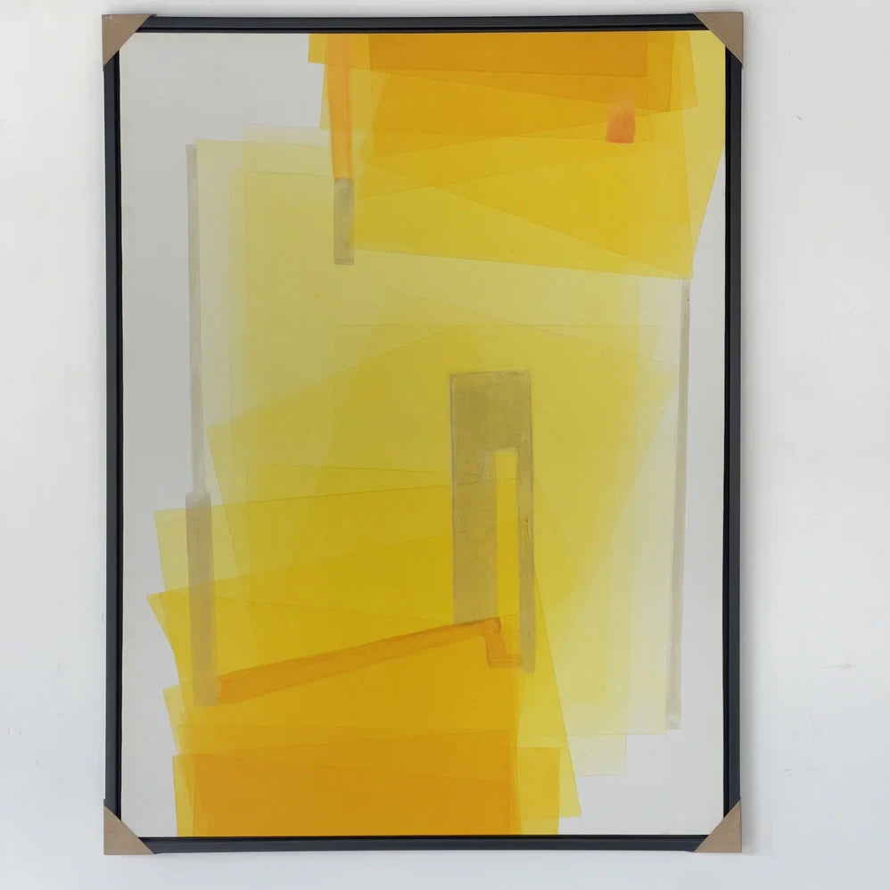 Radiant and minimalist, "Echoes of Eternity" exudes warmth and light through its translucent layers of yellow and golden hues. The subtle interplay of geometric shapes and soft gradients creates a harmonious balance between simplicity and sophistication, making it an exquisite centerpiece for modern interiors.