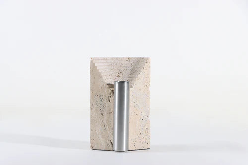 The Gallena Marble Vase with Stainless Steel features a refined blend of textured marble and polished stainless steel, bringing an elevated touch to your decor. Its clean, geometric design enhances modern spaces, offering both style and structure.