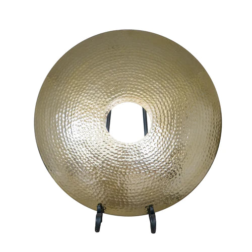 Radiating opulence, the Maceloid Golden Table Top Decor features a circular design with a hand-hammered texture that adds depth and visual intrigue. The gleaming golden finish, set atop a sturdy stand, creates a bold yet elegant statement piece. Ideal for contemporary and luxurious interiors, this decor item effortlessly elevates the aesthetic of any room with its timeless allure.