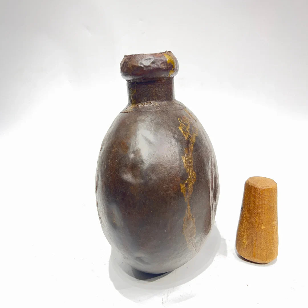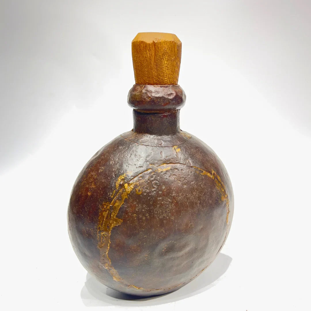 The Mehka Iron Kudiya is a testament to time-honored craftsmanship, featuring a rustic iron body with a weathered patina and golden markings that narrate its historic essence. Traditionally used for storing liquids, this piece includes a separate wooden stopper, adding to its authenticity. Its aged charm makes it an intriguing addition to any vintage or industrial-themed space.