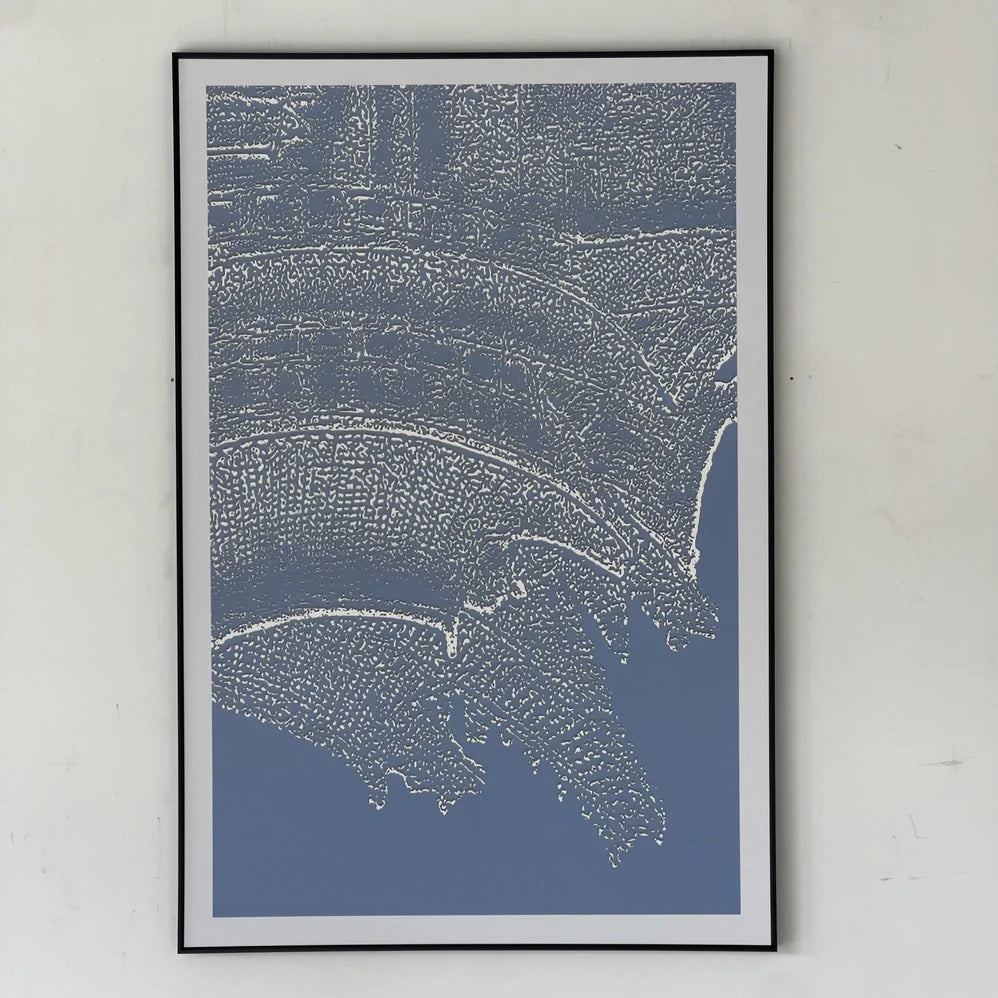 Elegant and intricate, "Ocean Overture" is a stunning piece that evokes the gentle rhythm and textured beauty of ocean waves. The interplay of delicate patterns against a serene blue background creates a tranquil and visually captivating composition. Framed in a sleek metal border, this artwork exudes sophistication and charm, making it a perfect addition to elevate any contemporary space.